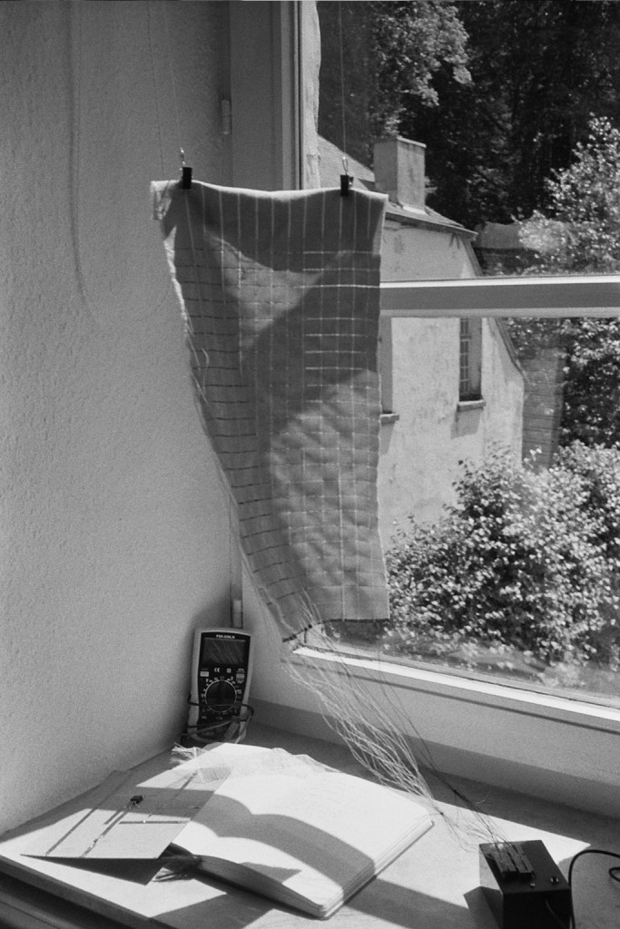 Il devient comme la peau d’une machine capable de moduler le son; il nous donne la possibilité d’augmenter le paysage sonore par nos gestes et nos déplacements, tout en laissant une grande place à l’aléatoire et tisser un dialogue sensible entre notre corps, la machine et l’environnement.